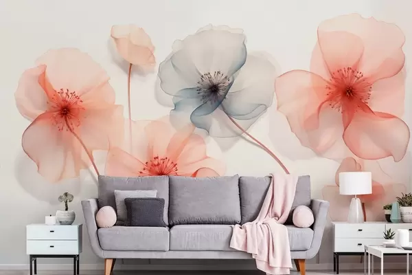 Fototapet Genomskinliga blommor i röda och blå toner Nr. w09515