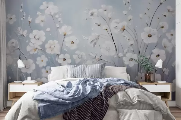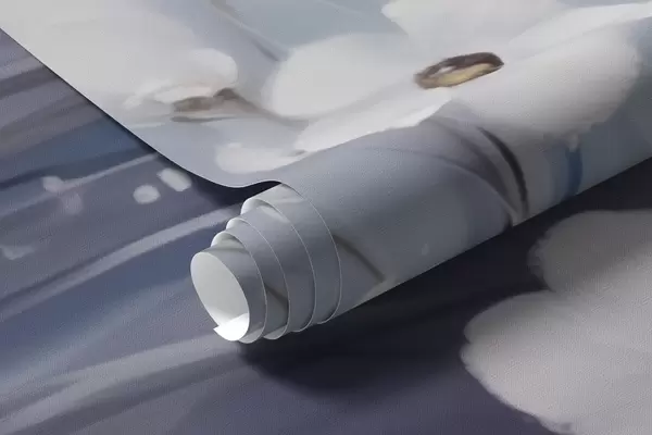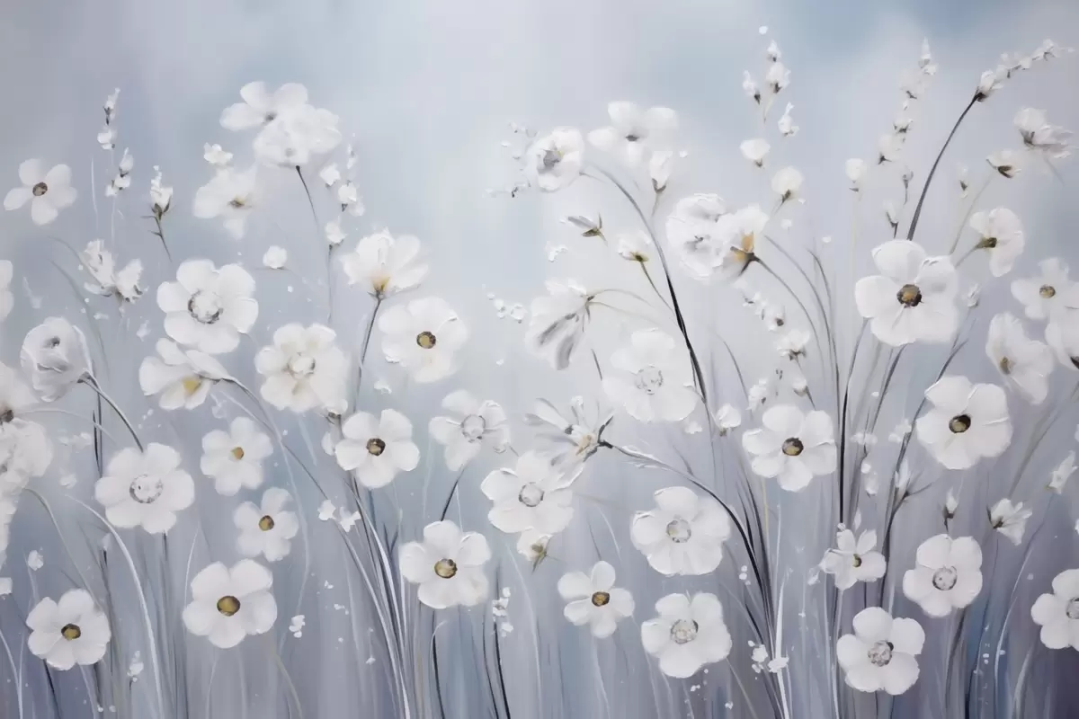 Fototapet Vita blommor mot en blå himmel i oljemålningsstil Nr. w09516