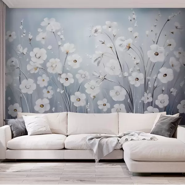 Fototapet Vita blommor mot en blå himmel i oljemålningsstil Nr. w09516
