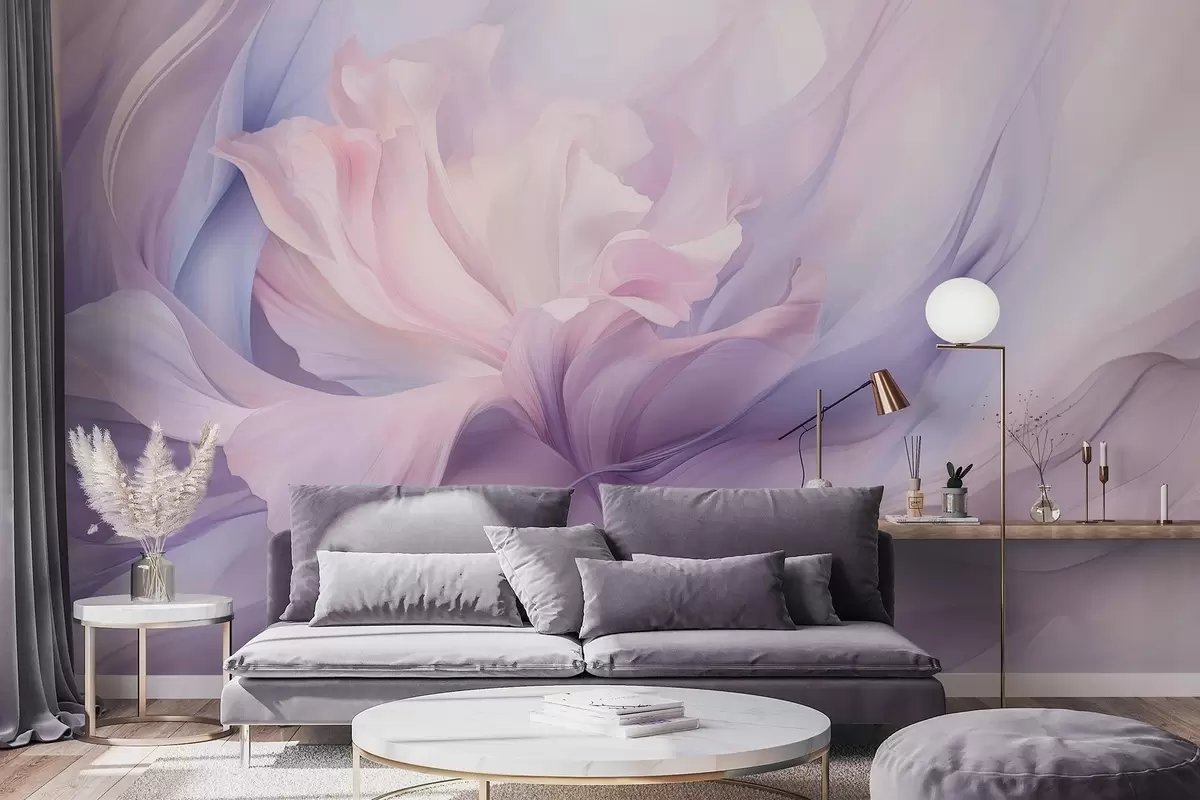 Fototapet Mjukt blombladsdimma: en luftig blomma i en pastelllila dimma Nr. w09517