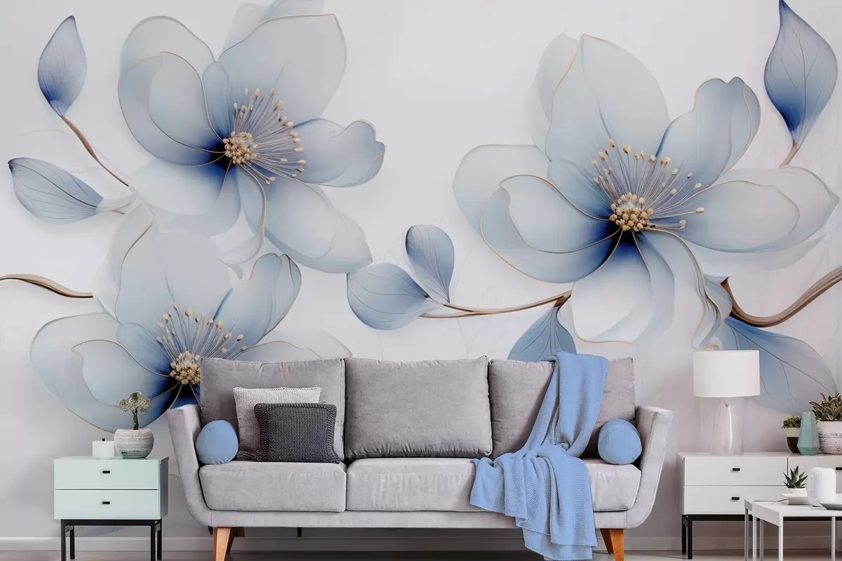 Fototapet Elegant magnoliablomsterkomposition i blå nyanser Nr. w09520