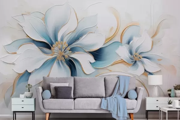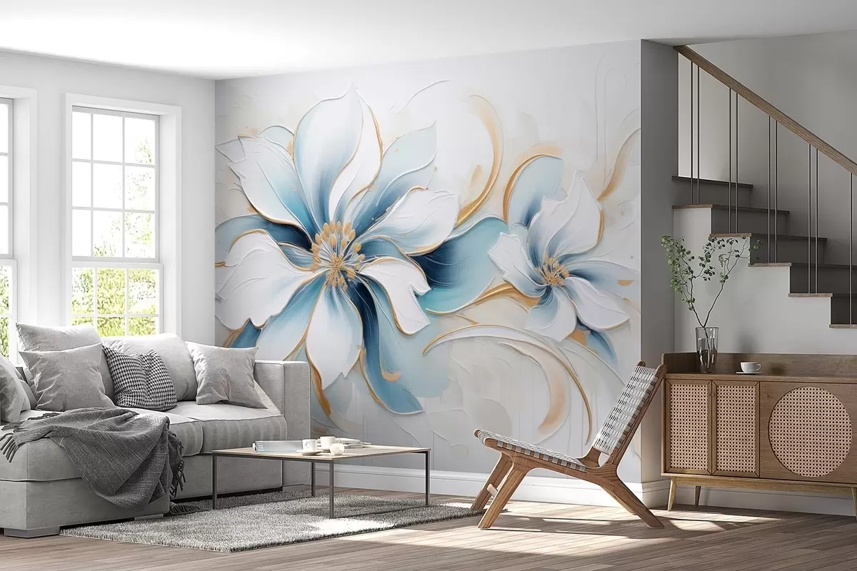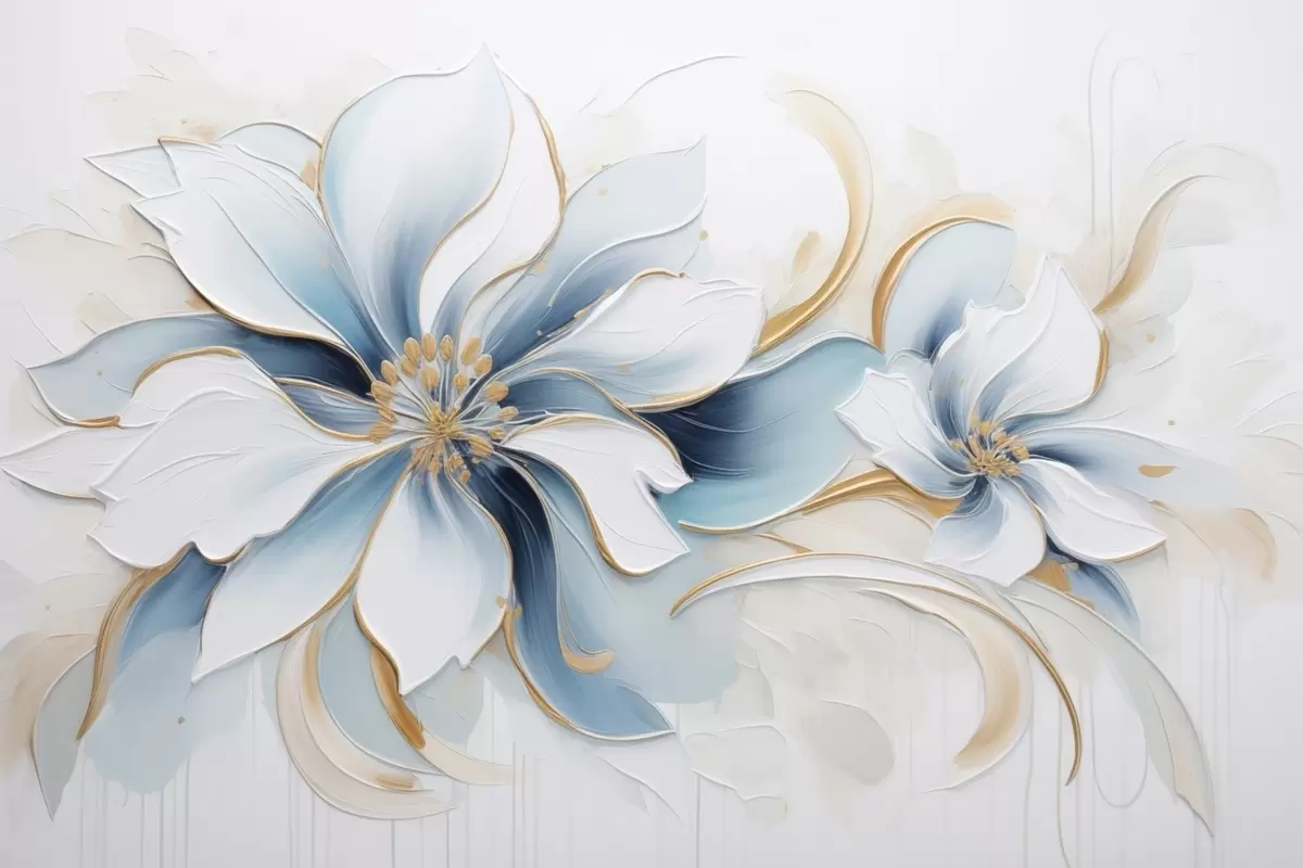 Fototapet Målningslik abstraktion med blå blommor i oljemålningsstil Nr. w09524