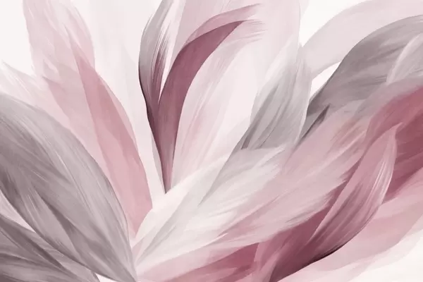 Fototapet Abstrakta texturerade fjädrar i brunt, vitt och grått och olika nyanser, överlappande på en vit bakgrund Nr. w09531