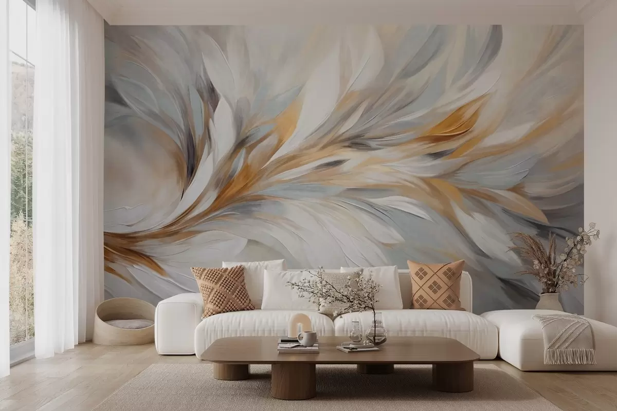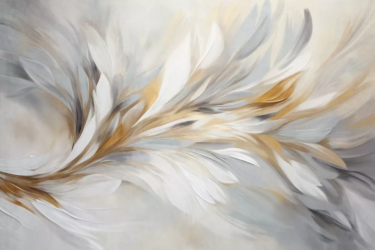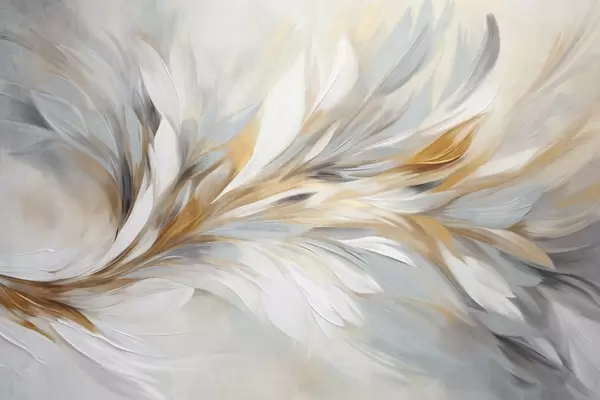 Fototapet Abstrakt målningsstil med vita, gula och grå texturerade penseldrag mot en mjuk, ljus bakgrund. Nr. w09552