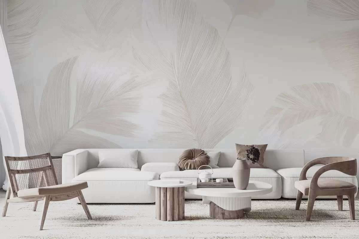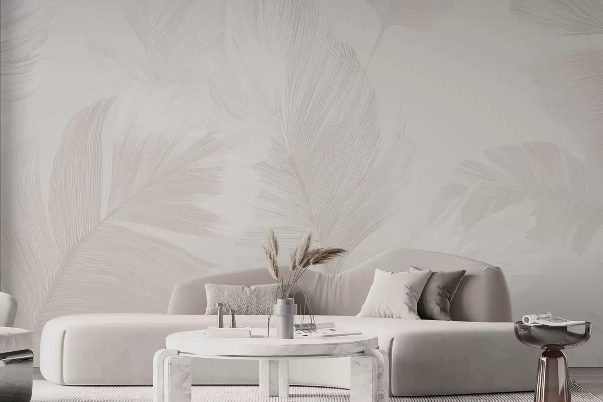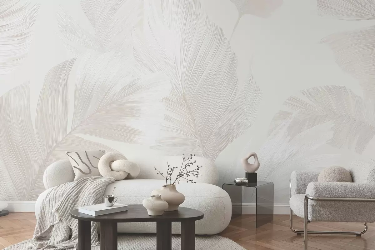 Fototapet Mjuka elfenbensfärgade fjädrar i mjölkiga beige toner Nr. w09563