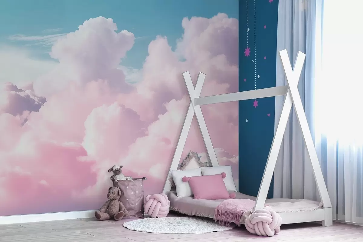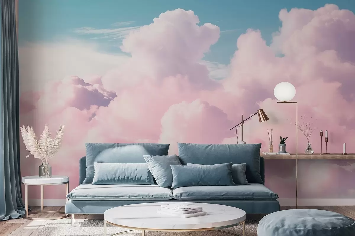 Fototapet Mjuka luftiga rosa moln på en blå himmel Nr. w09569