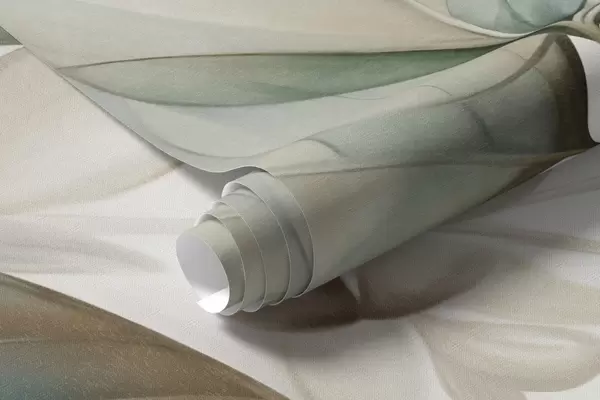 Fototapet Strukturerade genomskinliga blad i dämpade beige- och turkosa nyanser, med delikata stjälkar mot en mjuk, ljus bakgrund. Nr. w09583