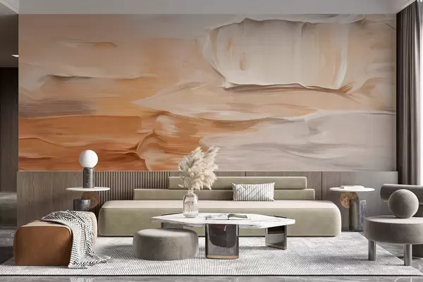Fototapet Abstrakt texturerad penseldragsimitation i varma jordnära toner av beige, kräm och brunt, modern konst Nr. w09588