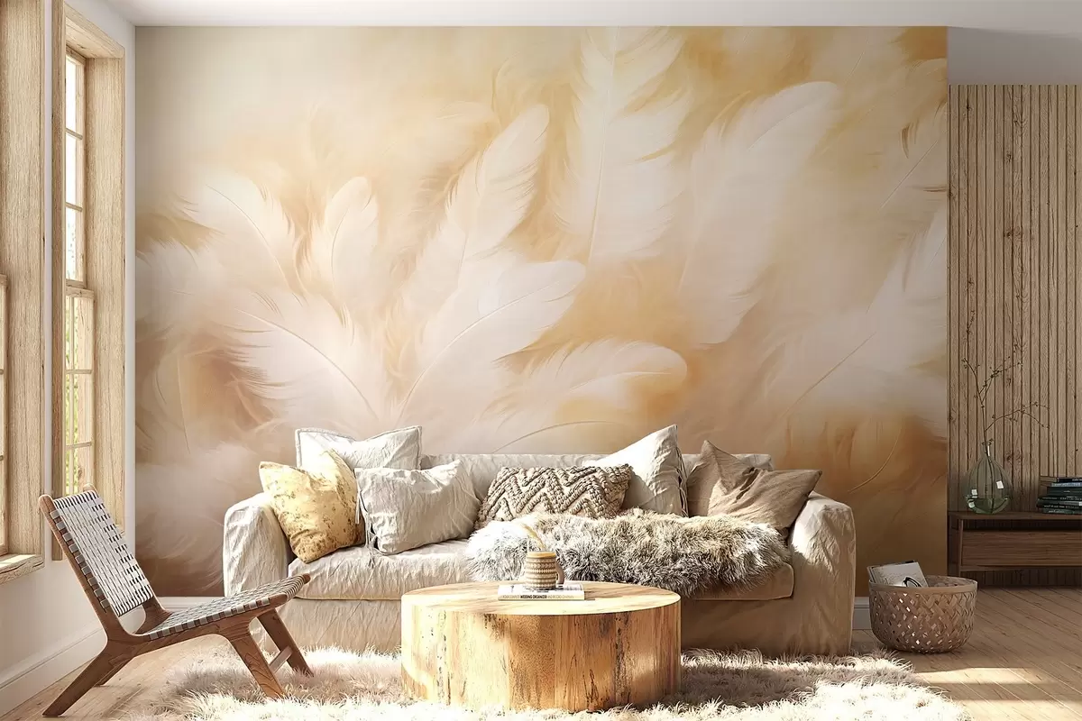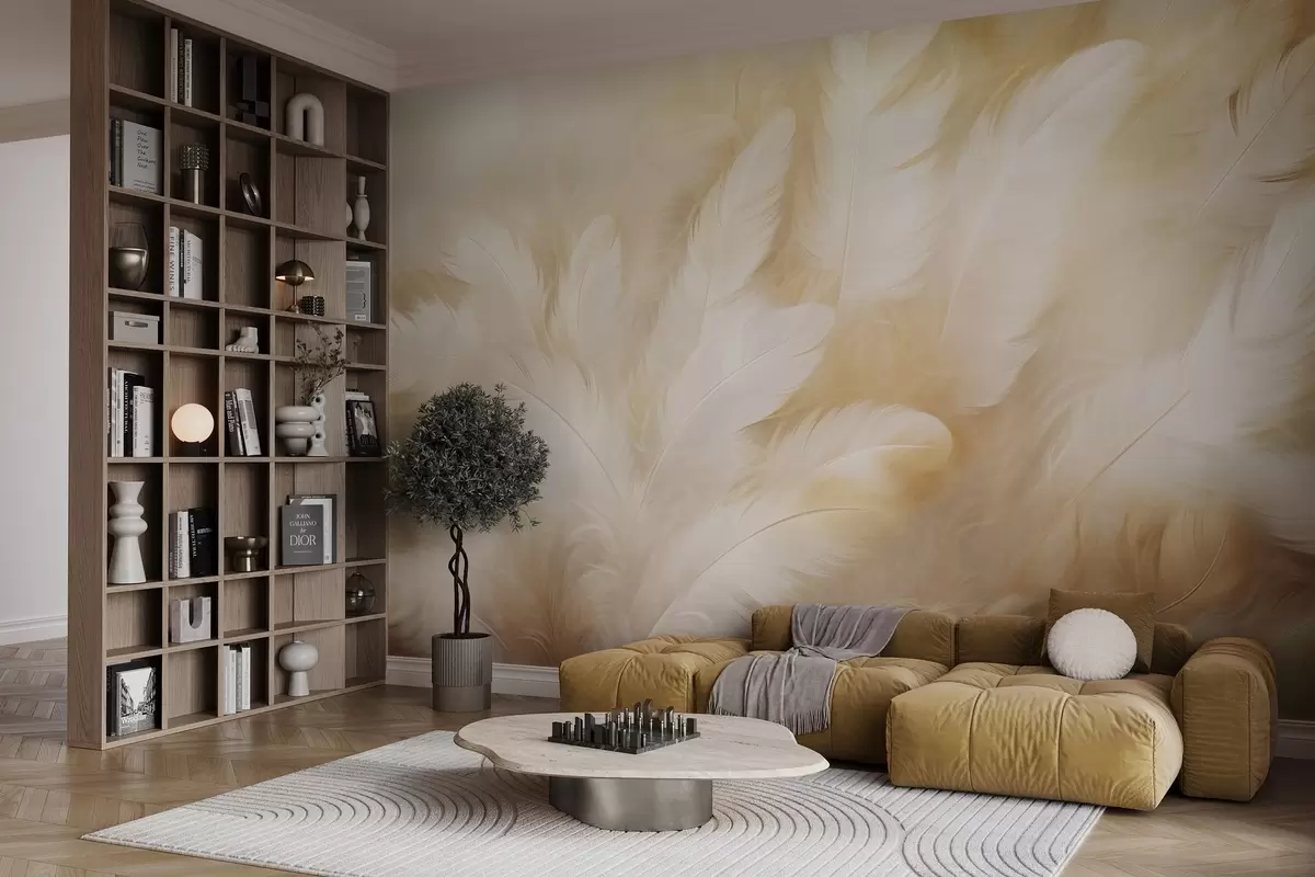 Fototapet Vita och gula fjädrar med mjuk konsistens Nr. w09606
