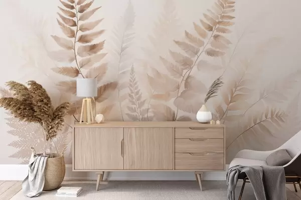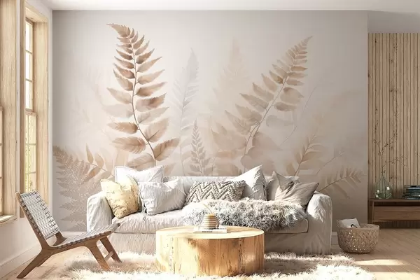 Fototapet Texturerade torkade ormbunksblad i olika nyanser av brunt, med en mjuk, ljus bakgrund i akvarellstil. Nr. w09615