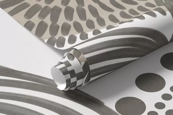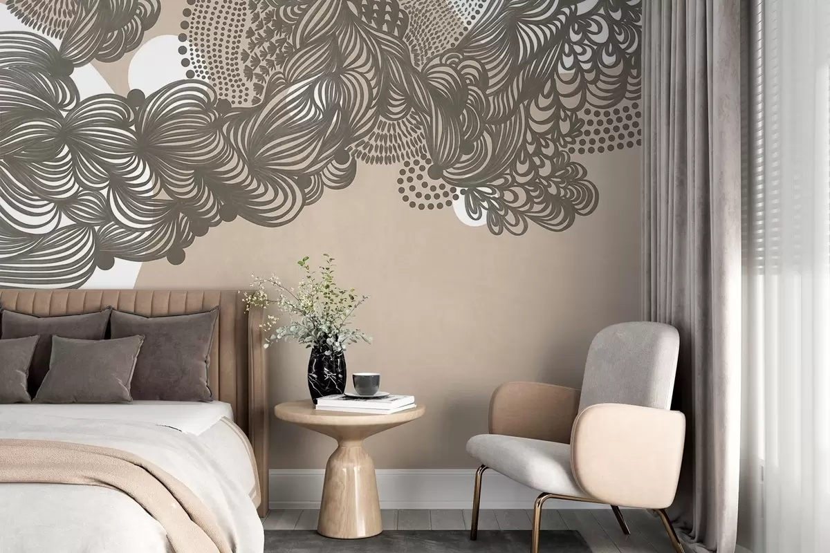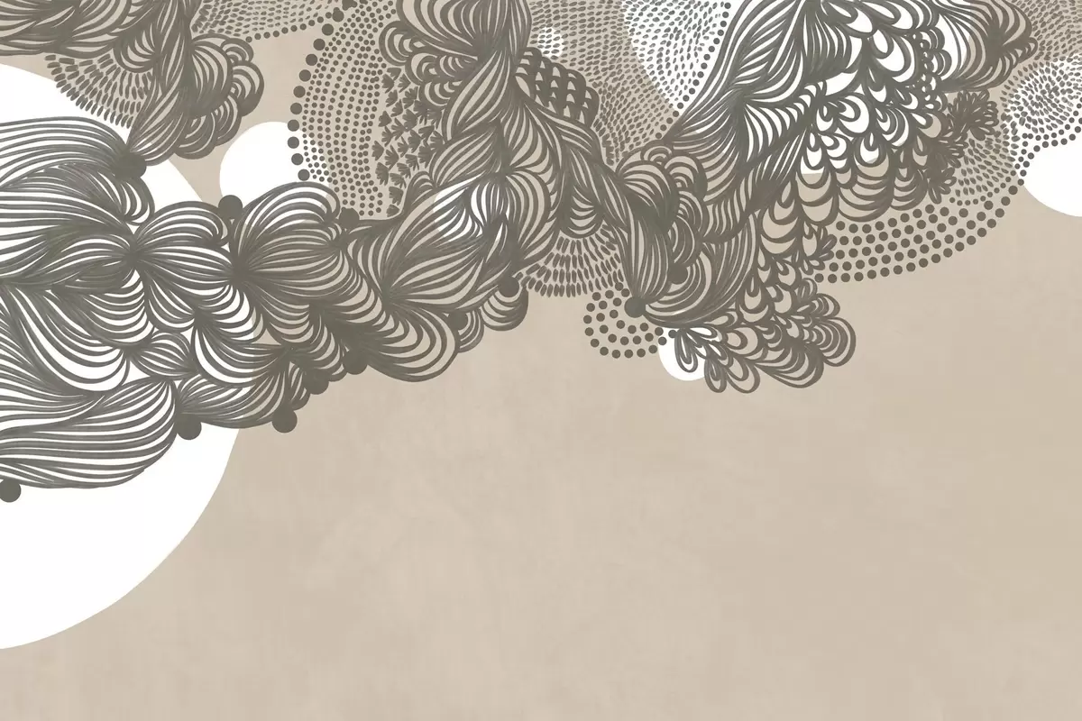Fototapet Abstrakt texturerad design på beige bakgrund, med intrikata linjer och prickiga texturer. Nr. w09621
