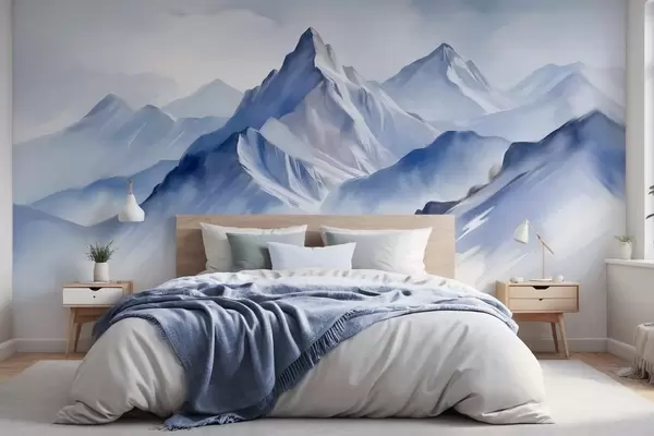 Fototapet Texturerade snöiga berg med en mjuk akvarelleffekt och en palett av blått och vitt Nr. w09630