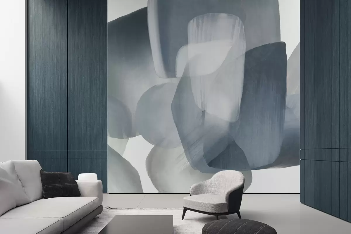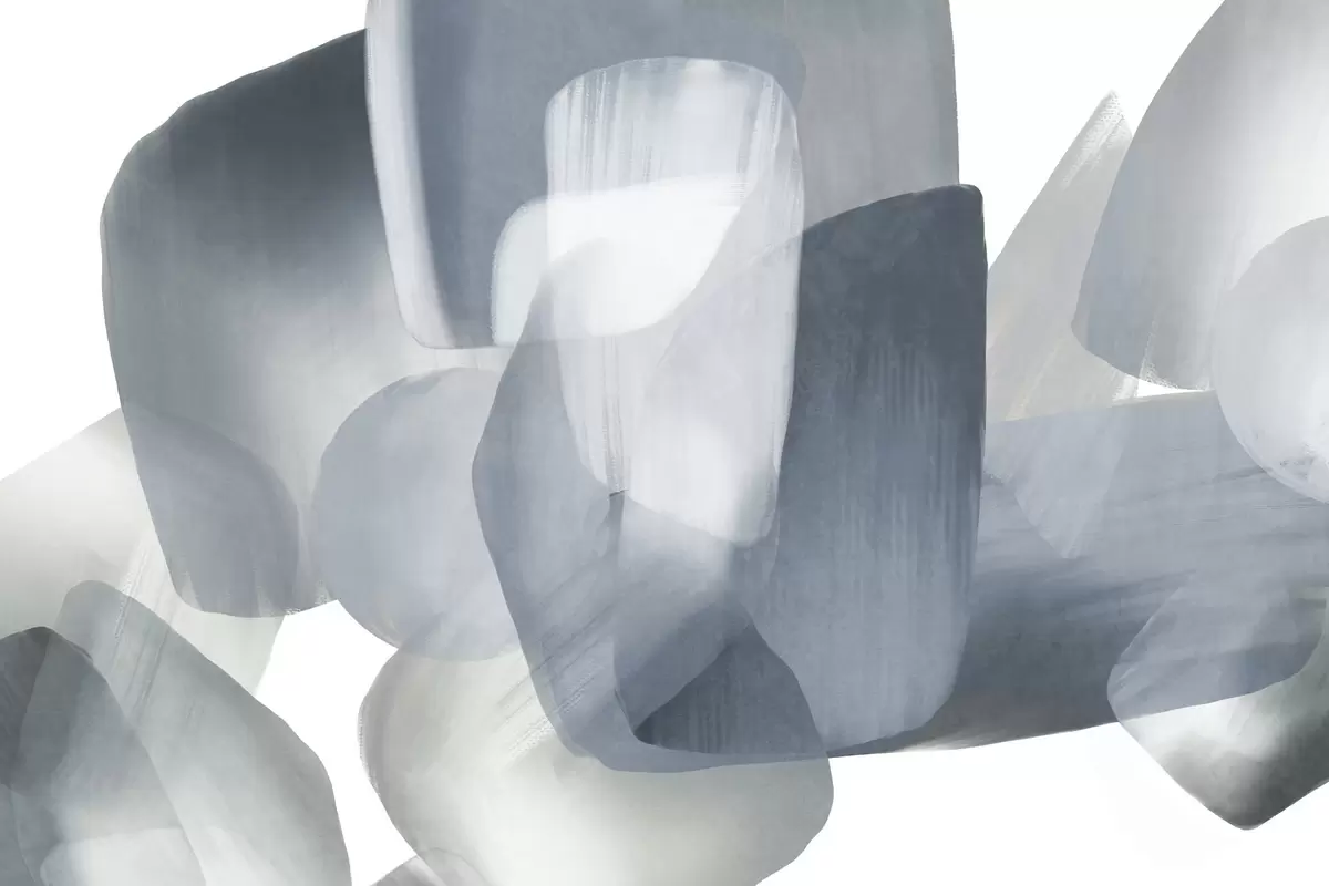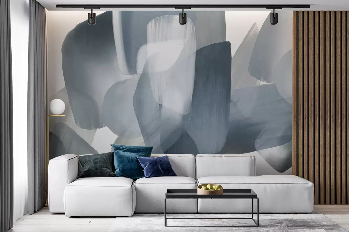 Fototapet Abstrakta texturerade former i dämpade blå och grå färger, med mjuka kanter och överlappande lager. Nr. w09642v1