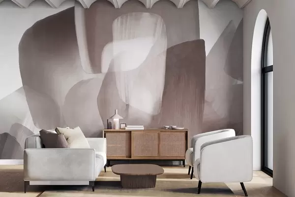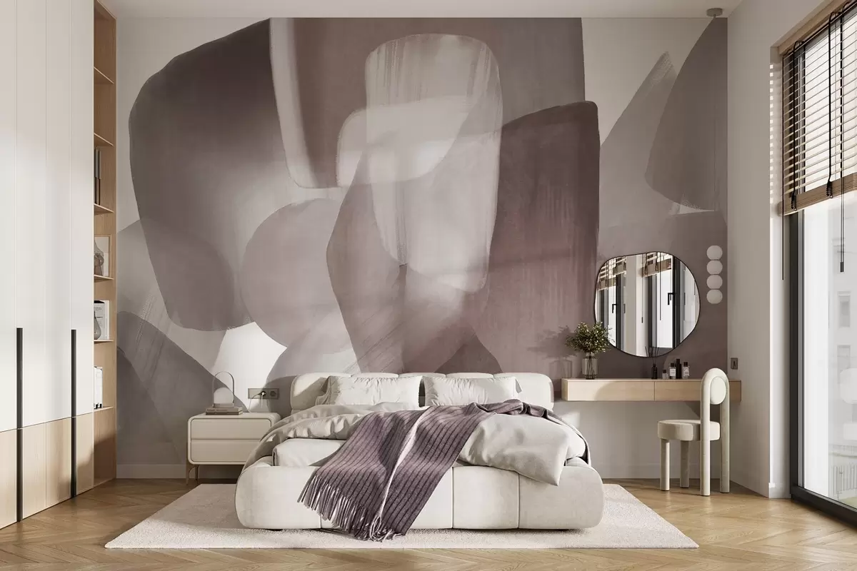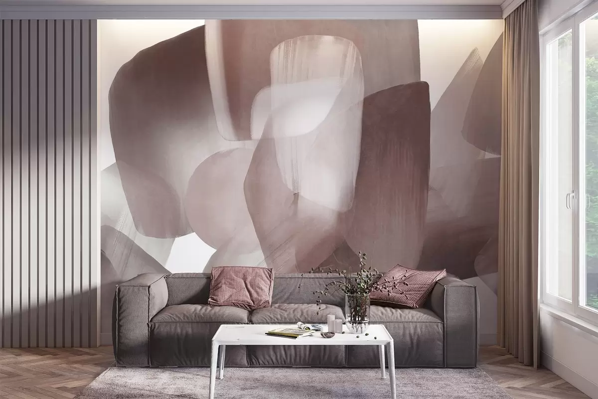 Fototapet Abstrakta texturerade former i dämpade burgundy- och gråfärger, med mjuka kanter och överlappande lager. Nr. w09642v2