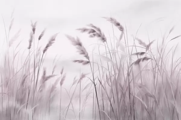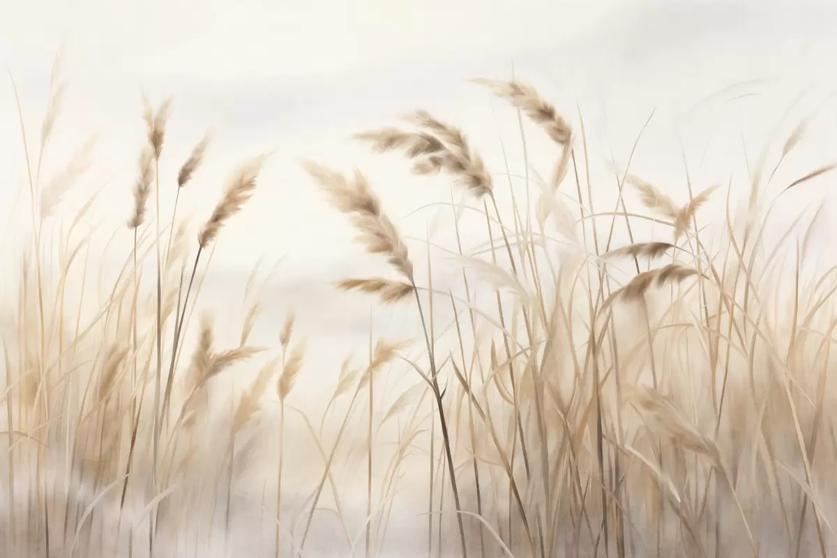 Fototapet Högt, strukturerat torrt gräs med veteax på fältet mot en mjuk, blek bakgrund Nr. w09648