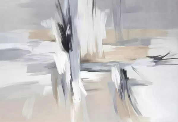 Fototapet Abstrakt texturerad målningsstil med penseldrag i nyanser av vitt, grått och beige Nr. w09651