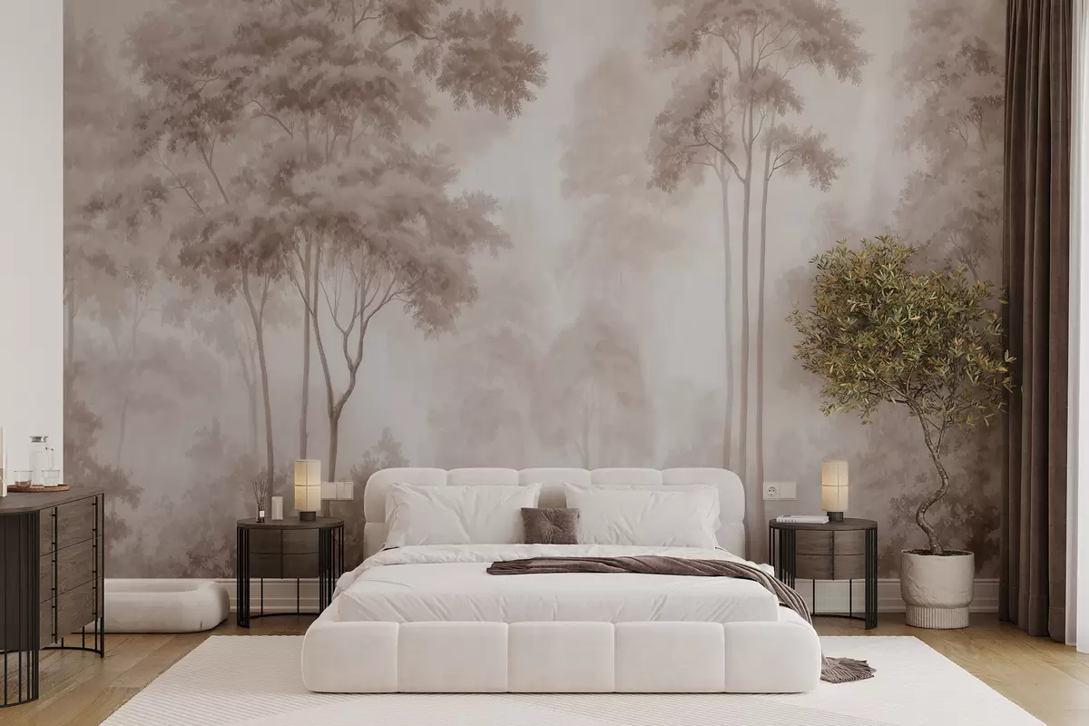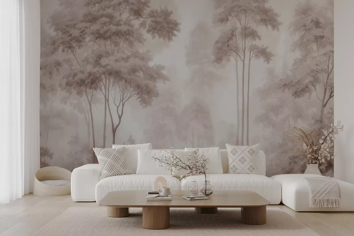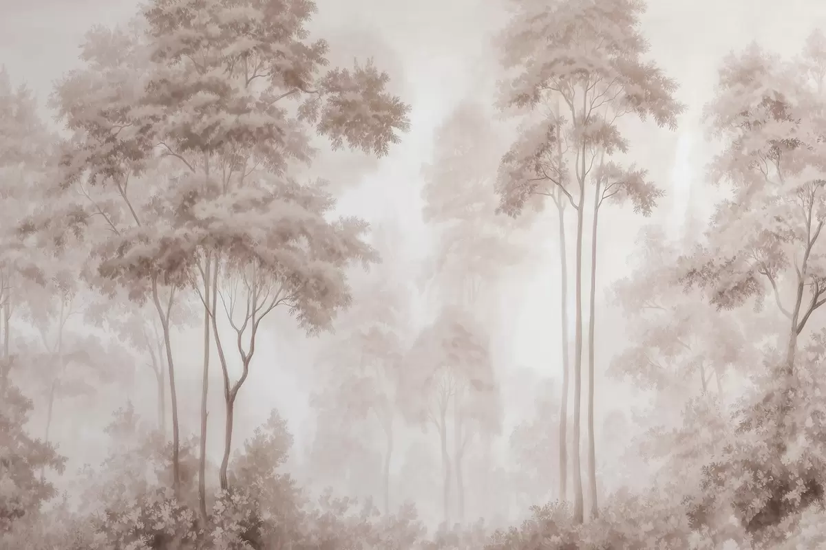 Fototapet Ett abstrakt skogslandskap i rökiga beige nyanser med en känsla av djup Nr. w09657