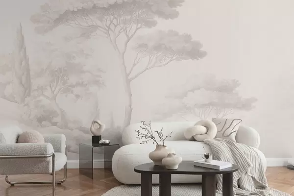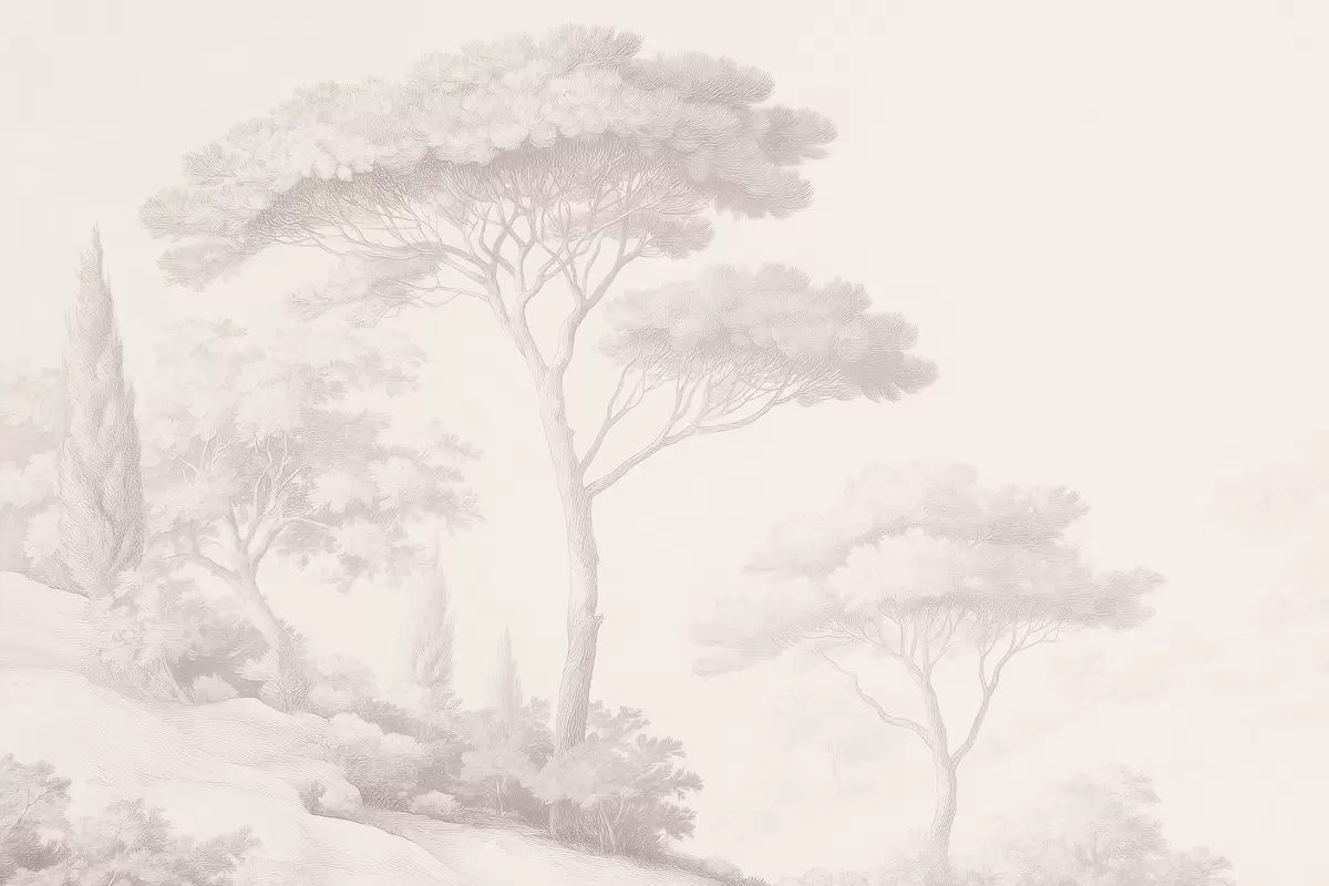 Fototapet Lugnt skogslandskap i en beige färgpalett Nr. w09685