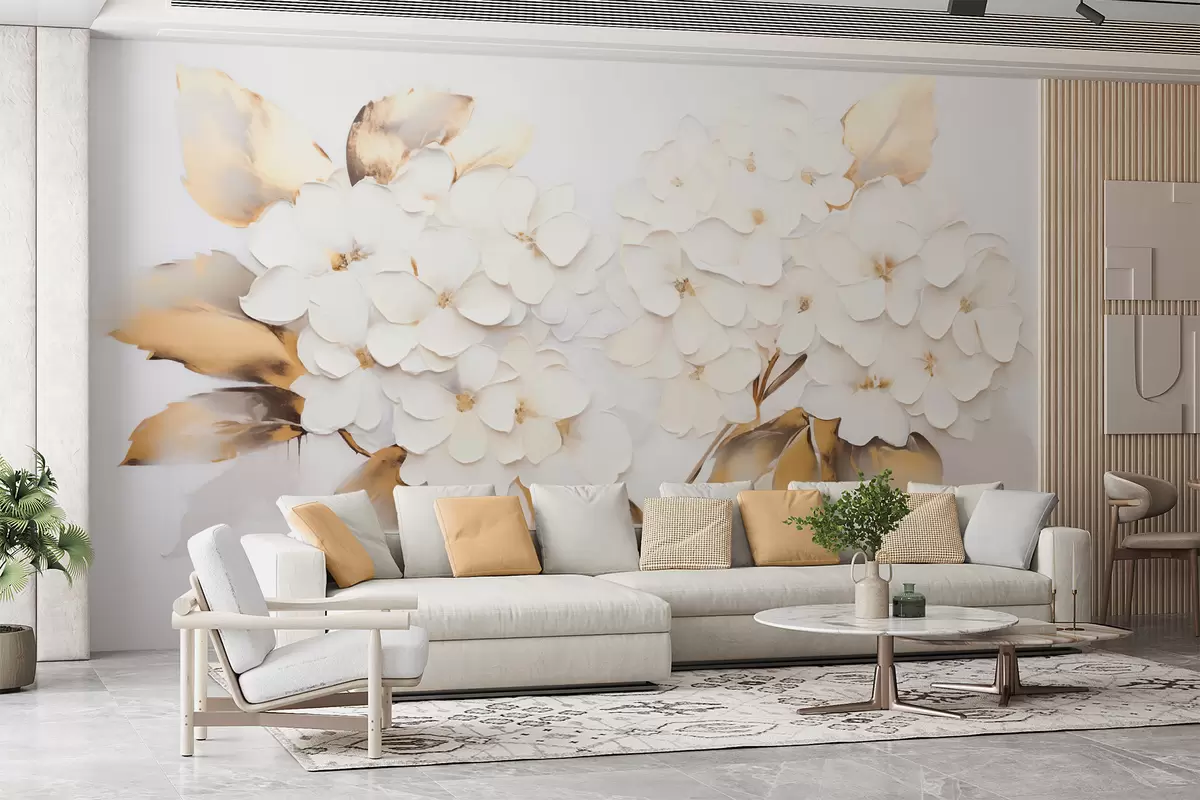 Fototapet Lyxiga hortensior med gula blad Nr. w09711