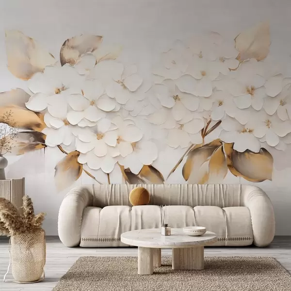 Fototapet Lyxiga hortensior med gula blad Nr. w09711