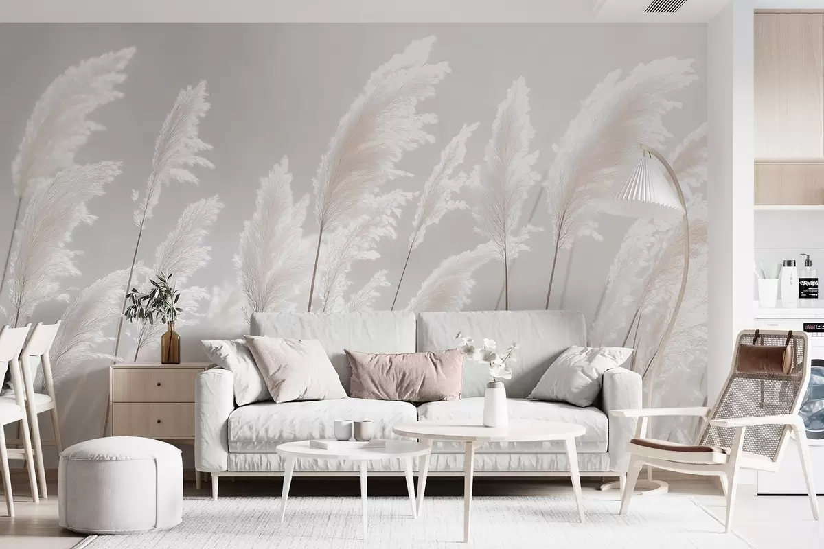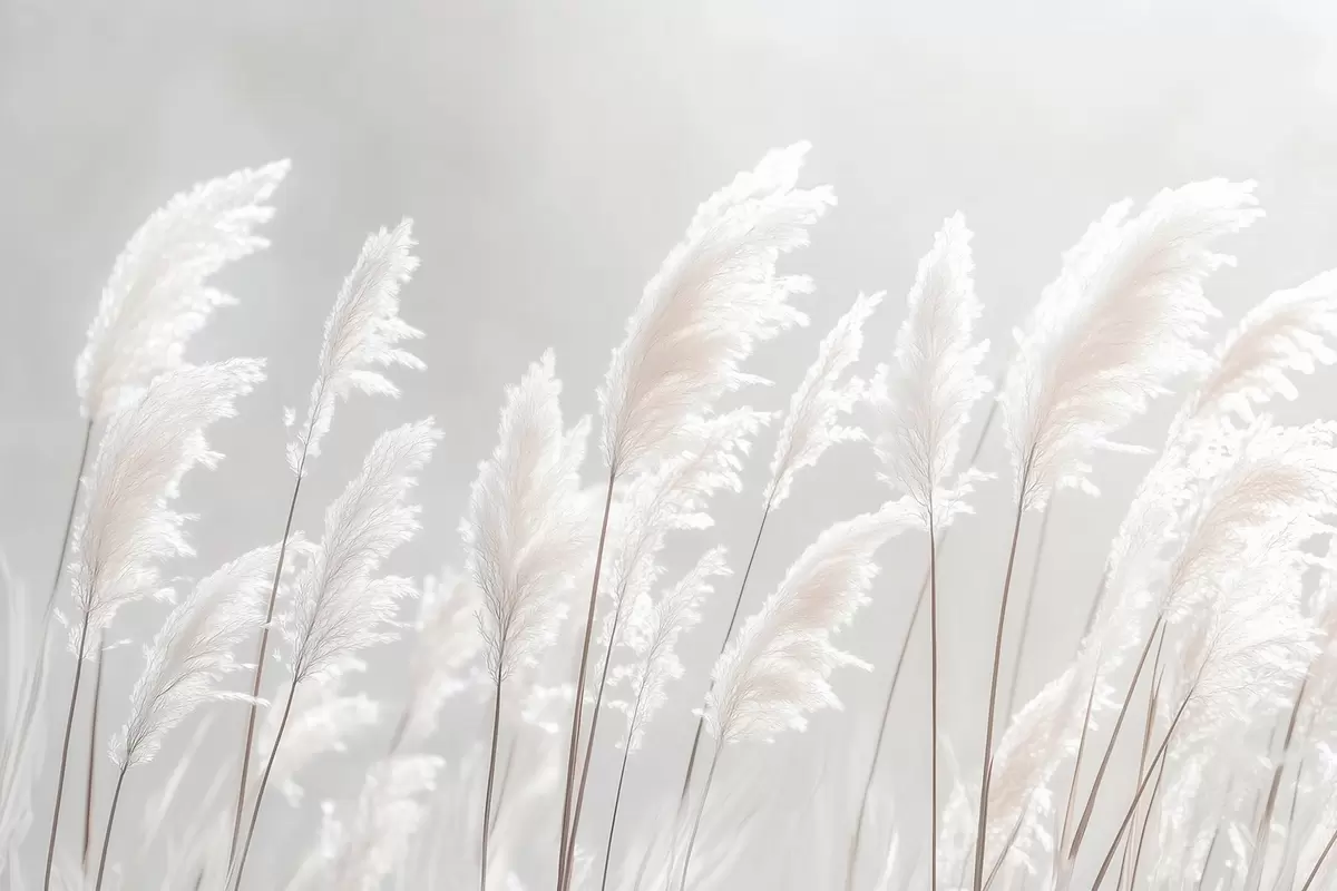 Fototapet Mjukt vitt pampasgräs i det milda morgonljuset Nr. w09717