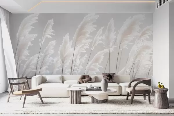 Fototapet Mjukt vitt pampasgräs i det milda morgonljuset Nr. w09717