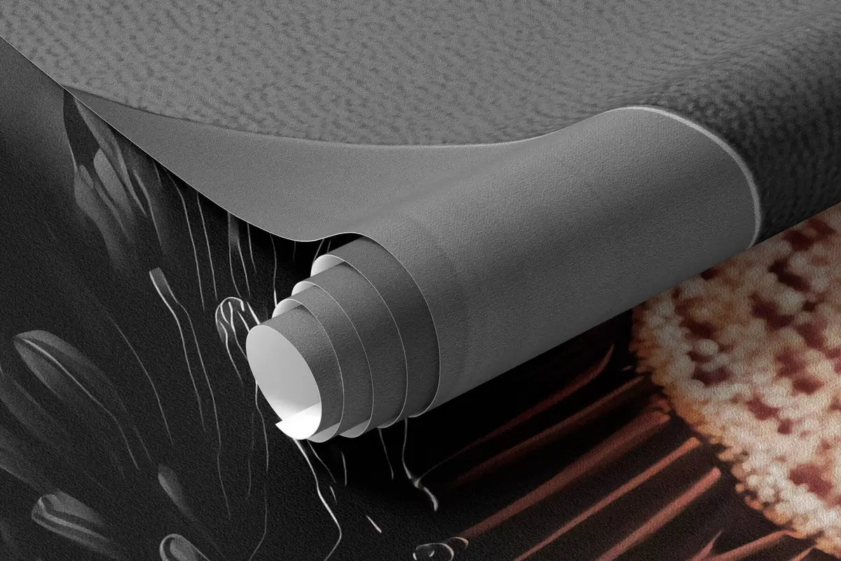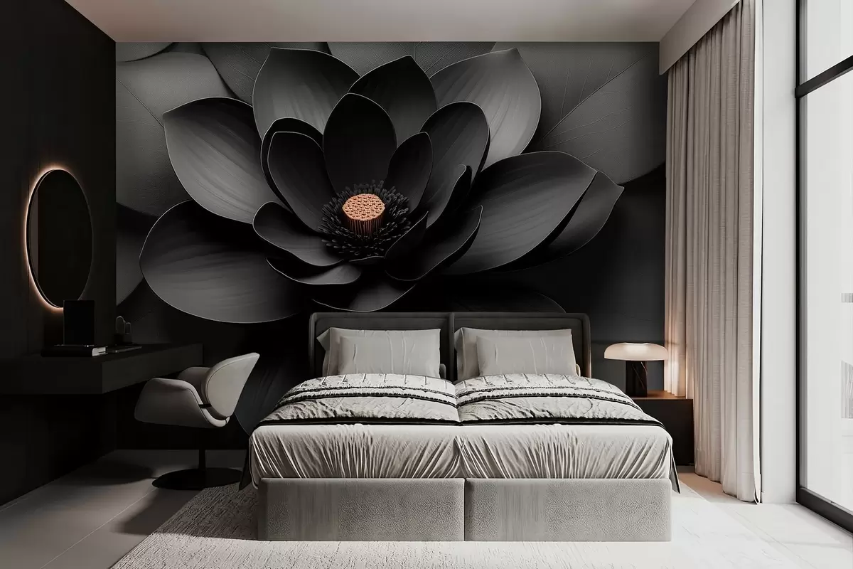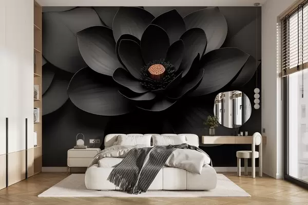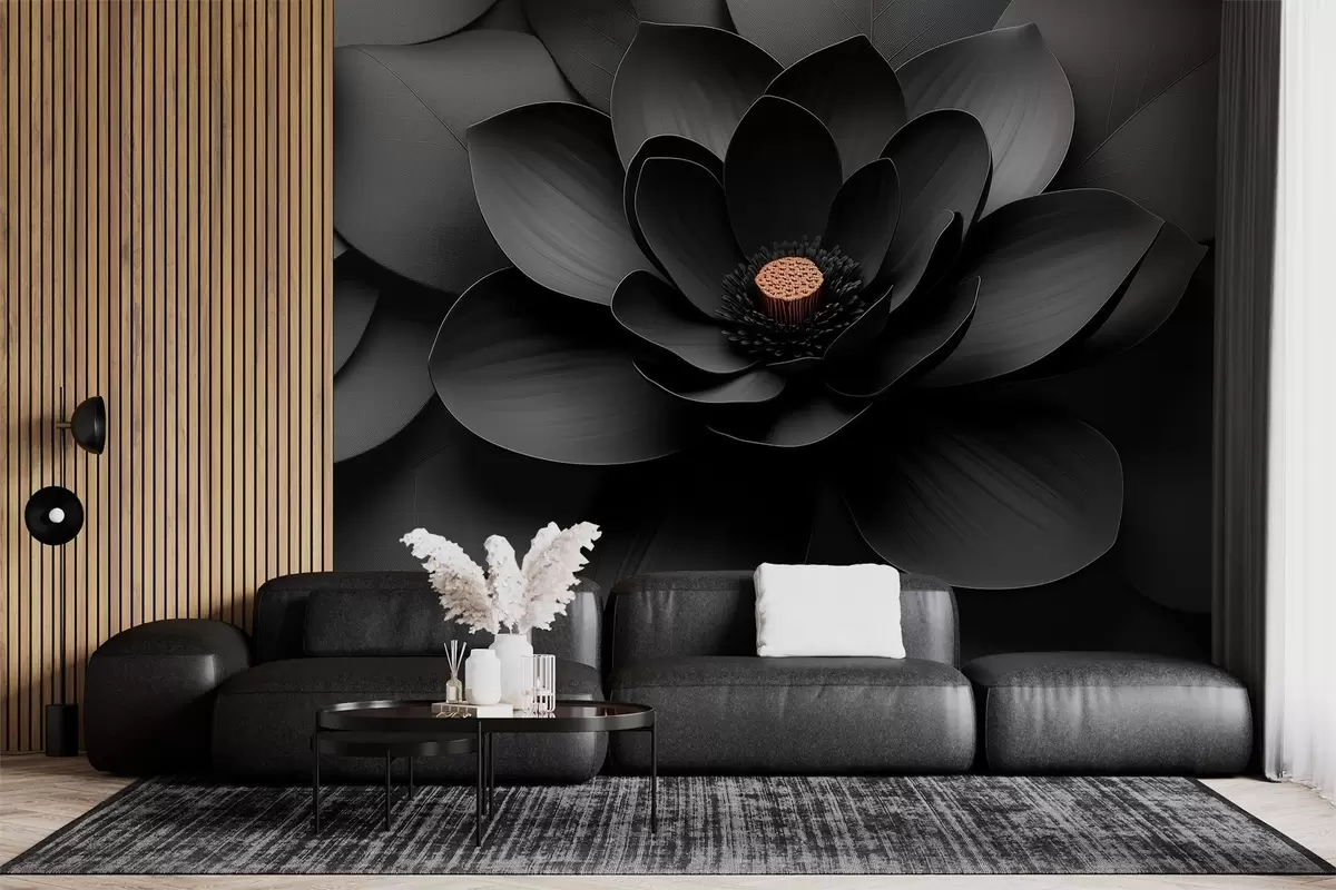 Fototapet En minimalistisk svart blomma med kronblad och en kontrasterande varm mitt Nr. w09721