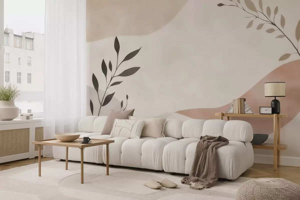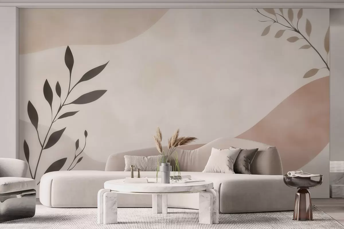 Fototapet Abstrakta beige-persikofärgade vågor med grenar Nr. w09722