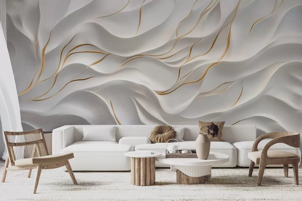 Fototapet Grå präglade vågor med gula accenter Nr. w09724