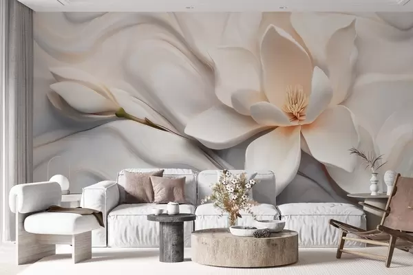 Fototapet Tredimensionell vit magnolia med marmorimitation i relief Nr. w09729