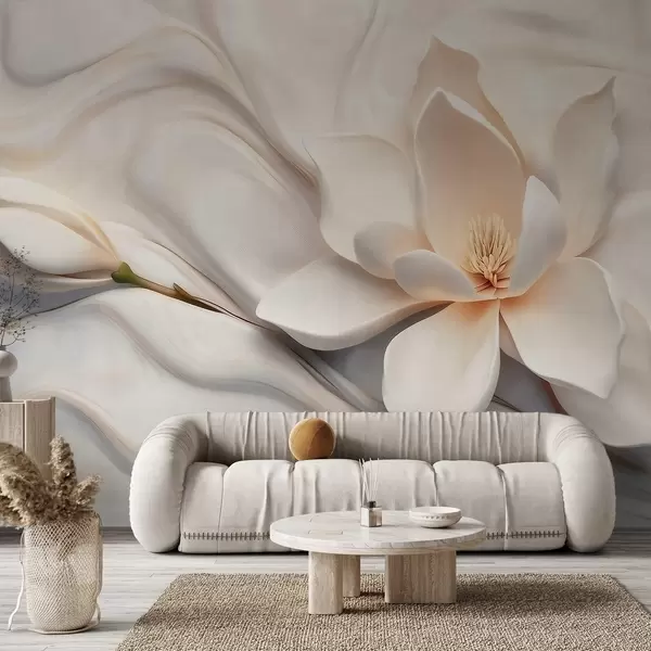 Fototapet Tredimensionell vit magnolia med marmorimitation i relief Nr. w09729