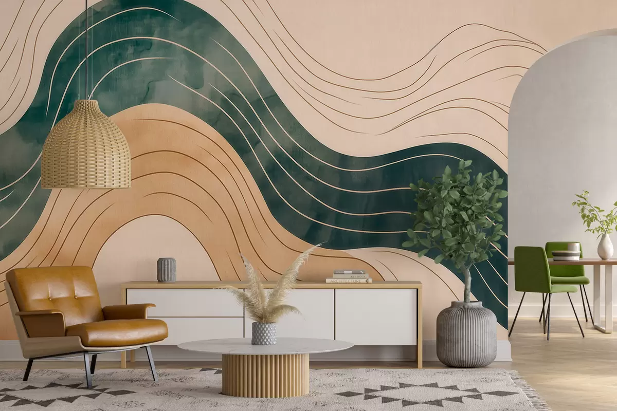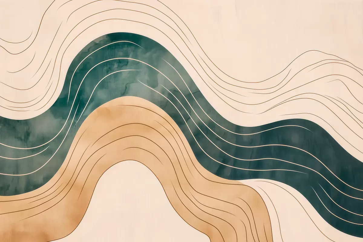 Fototapet Abstrakta vågiga linjer i naturliga sand- och smaragdtoner Nr. w09732