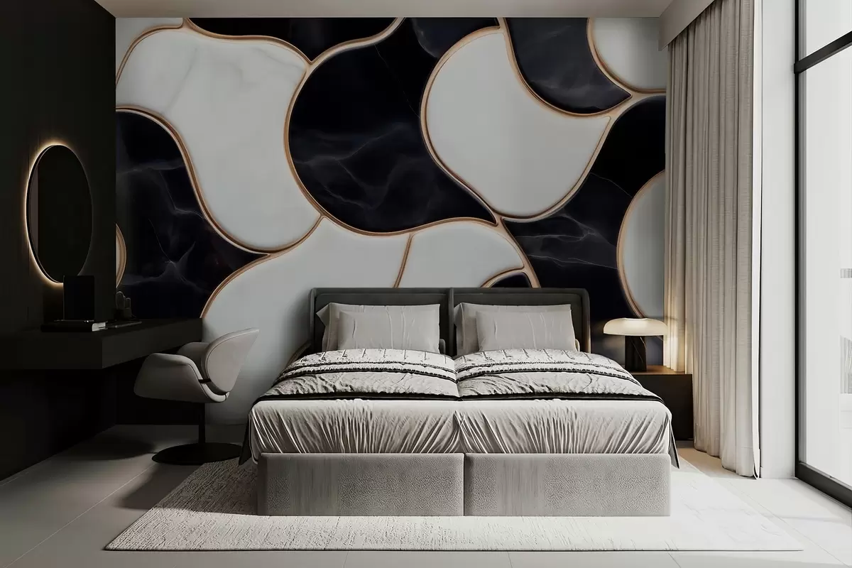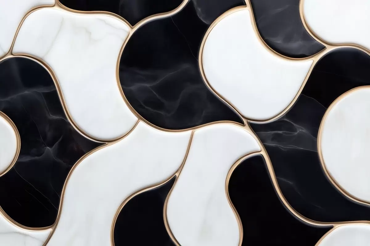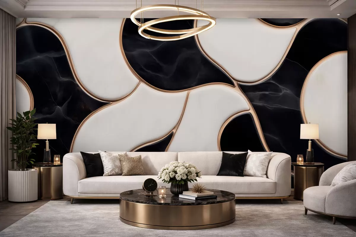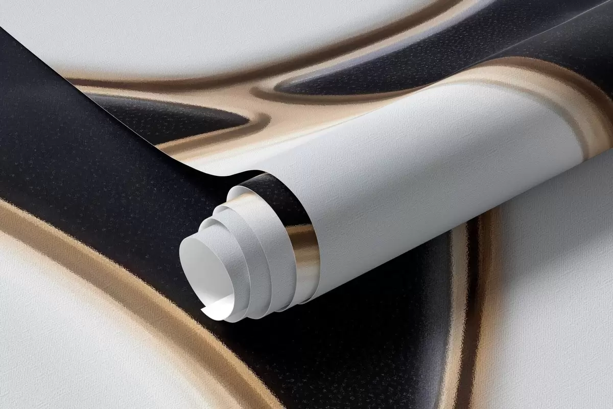 Fototapet Abstrakt imitation av en marmorkomposition i svarta och vita nyanser med gula linjer Nr. w09733