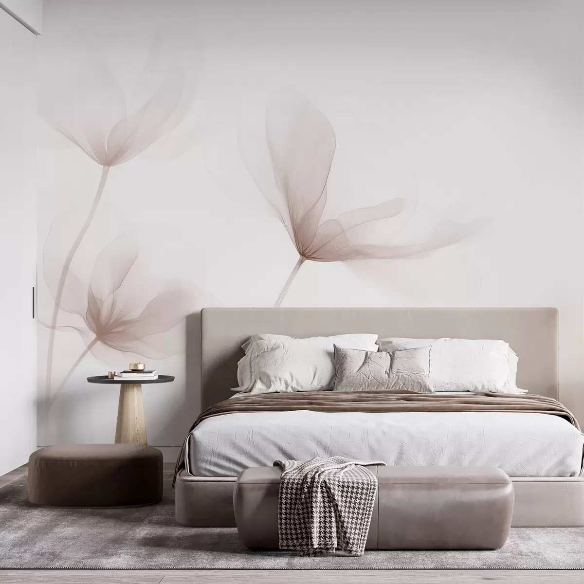 Fototapet Luftiga beige blommor i minimalistisk, ljus stil Nr. w09734