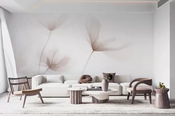 Fototapet Luftiga beige blommor i minimalistisk, ljus stil Nr. w09734