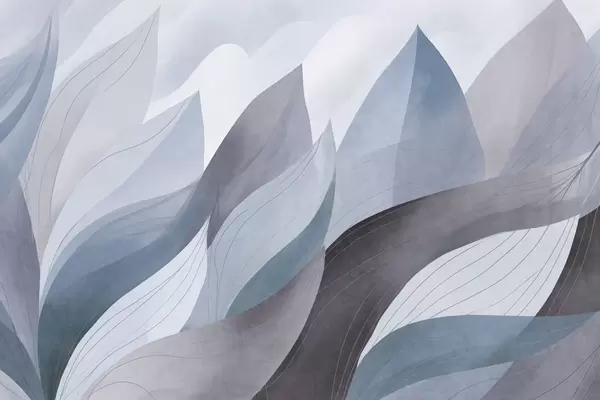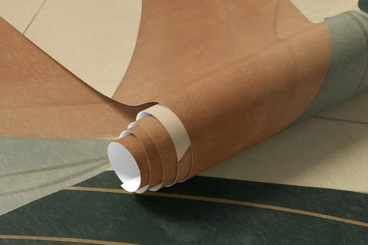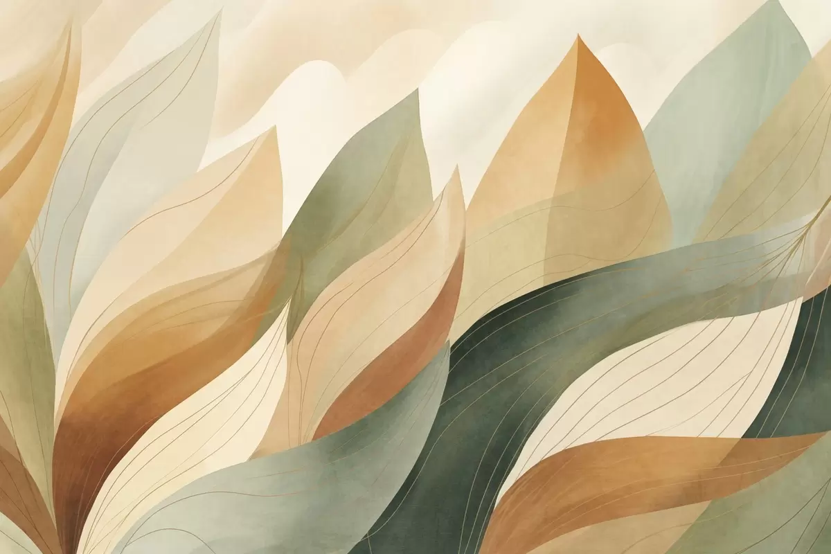 Fototapet Abstrakta blad, dämpade jordtoner i grönt och orange med fina linjedetaljer, mjuk akvarellstruktur. Nr. w09736