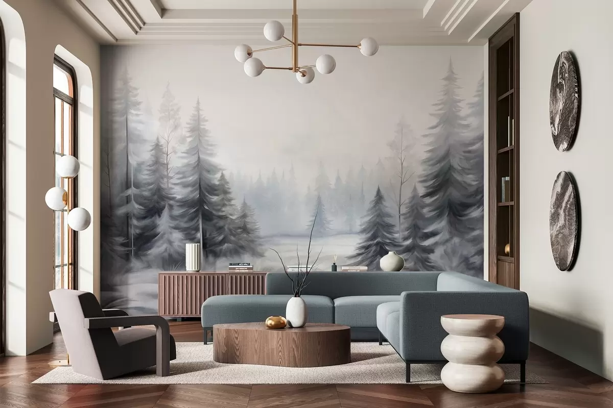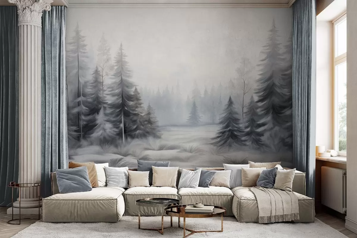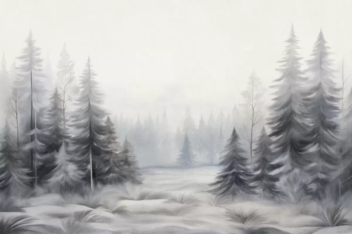 Fototapet Texturerade vinterträd i dimma, i dämpade grå och vita toner Nr. w09745
