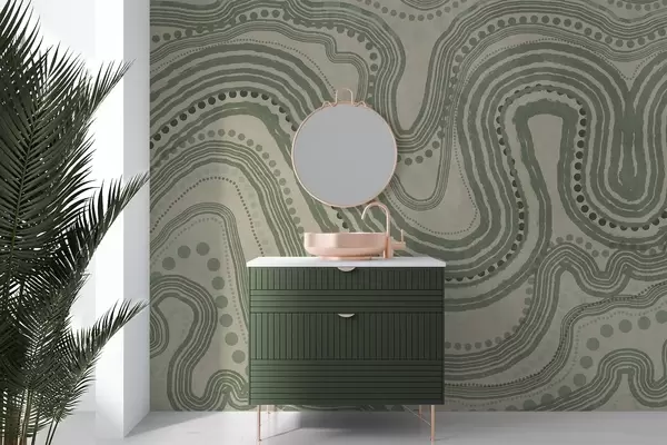 Fototapet Abstrakta gröna och beige vågiga linjer och prickar, modern texturerad konst Nr. w09747