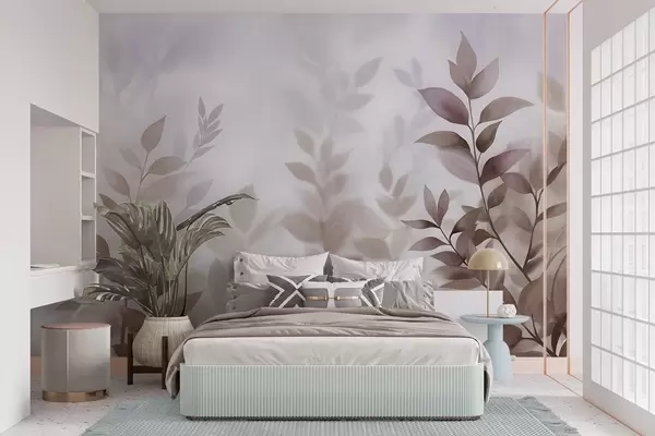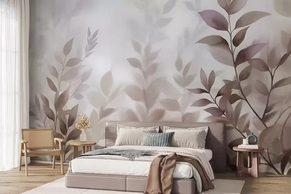 Fototapet Delikata grenar med dämpade bruna och beige blad, akvarellmålningsstil, texturerad konst Nr. w09750