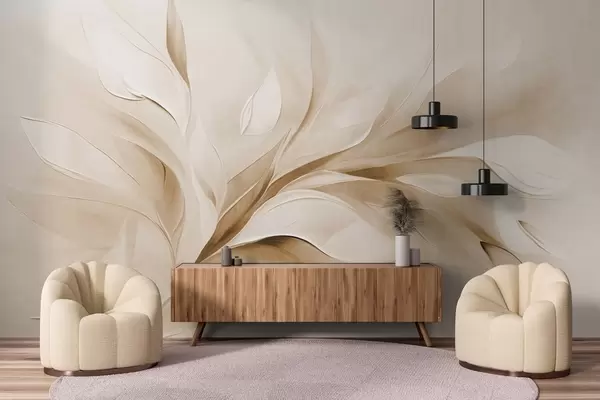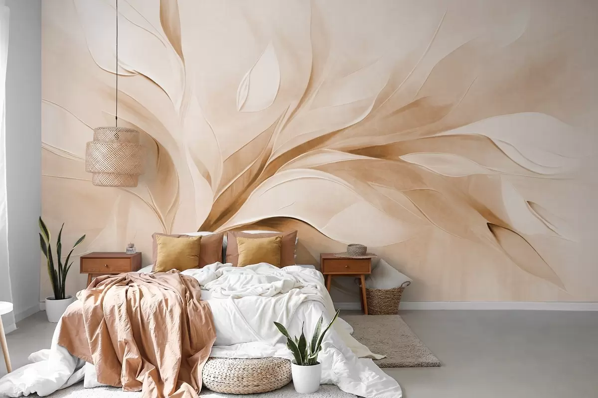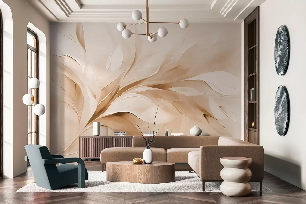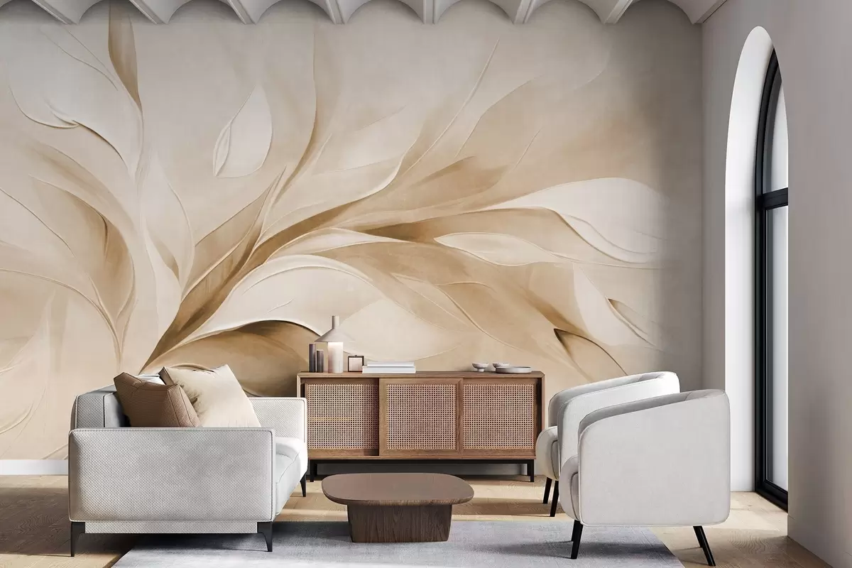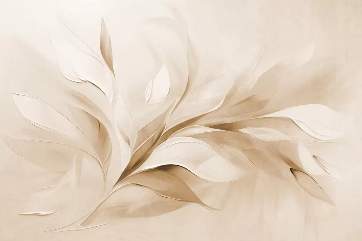 Fototapet Abstrakt texturerad målningsstil med beige och vita flödande löv Nr. w09765v1
