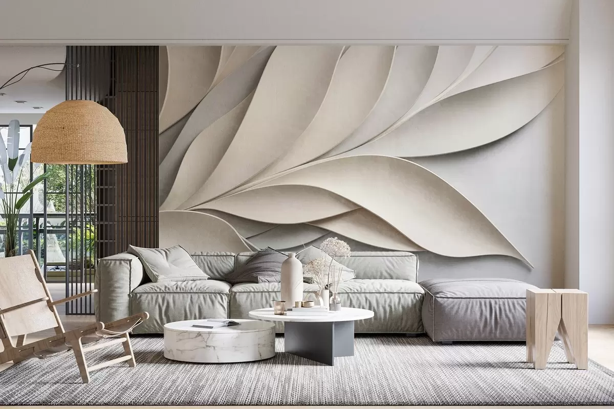 Fototapet Abstrakta blad i beige och grått, texturerad modern konst Nr. w09769