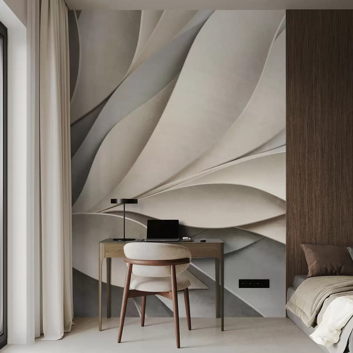 Fototapet Abstrakta blad i beige och grått, texturerad modern konst Nr. w09769