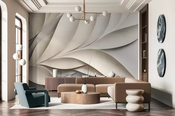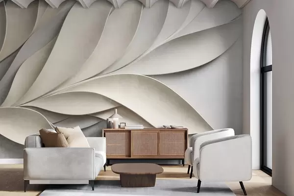 Fototapet Abstrakta blad i beige och grått, texturerad modern konst Nr. w09769