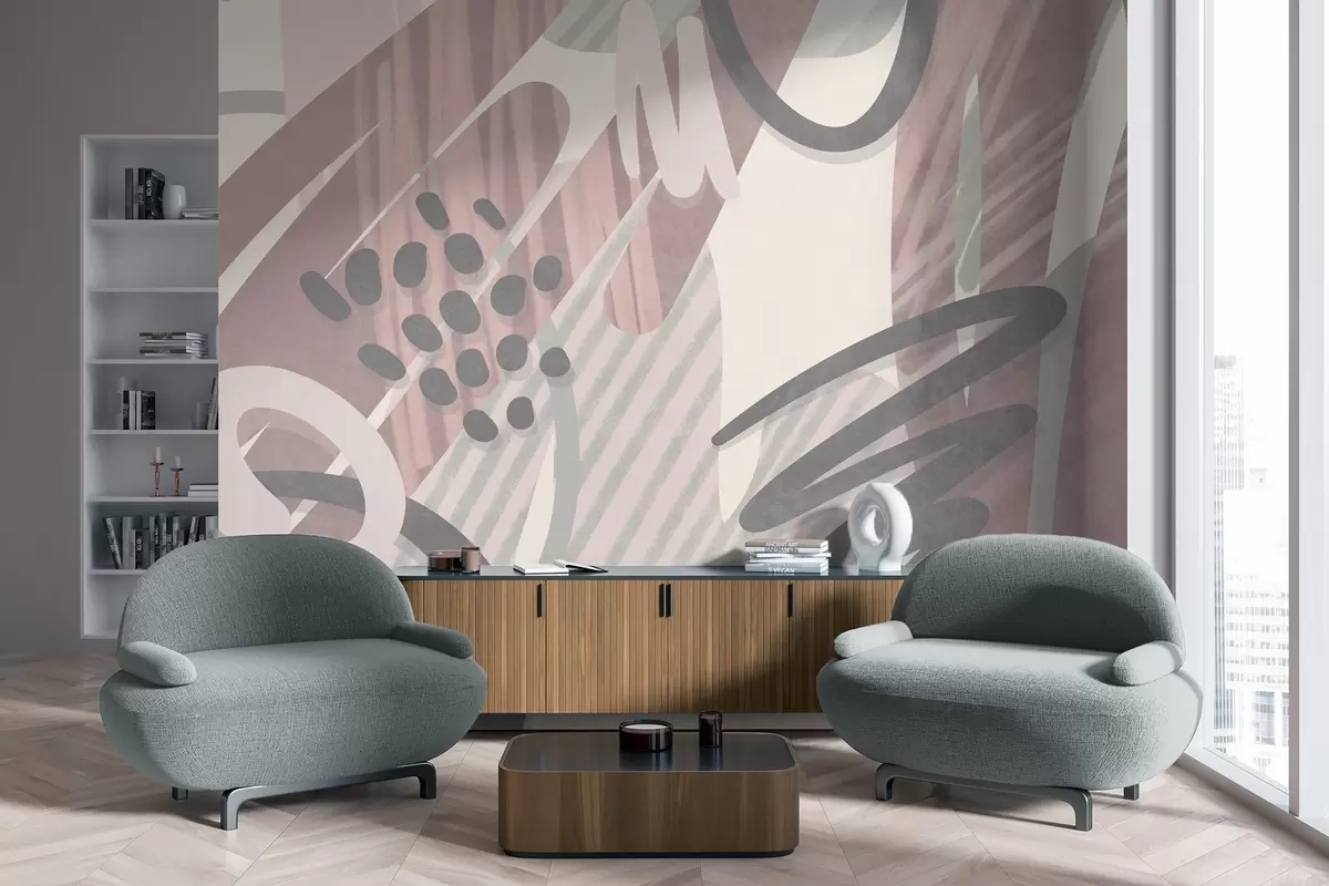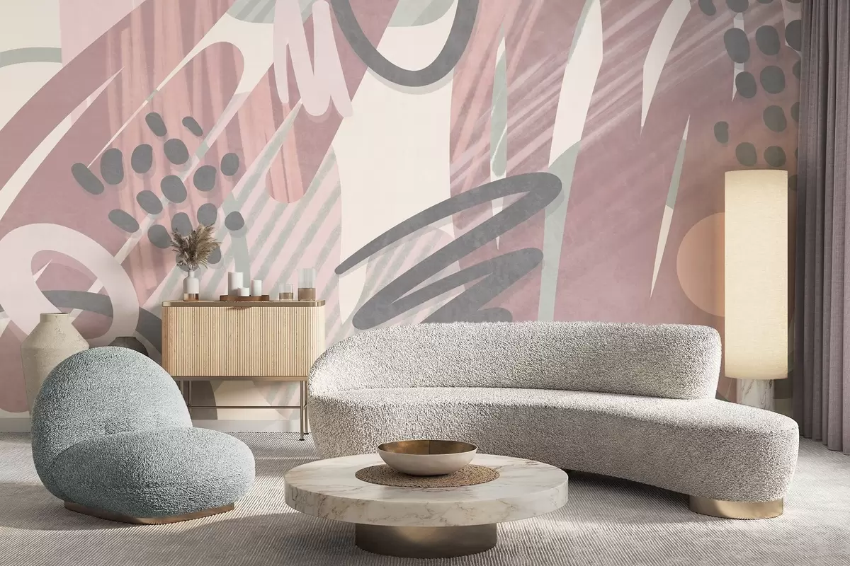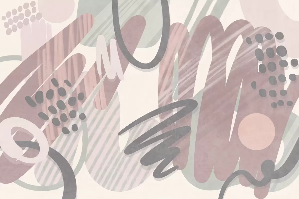 Fototapet Ett abstrakt mönster med organiska former, klotter och prickar i dämpade pastellfärger Nr. w09774v1