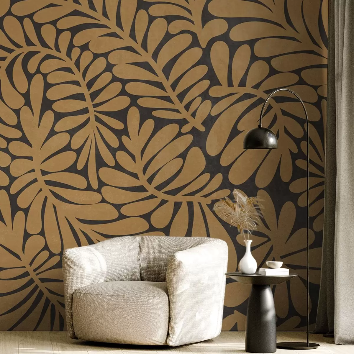 Fototapet Stiliserade senapsgula blad mot en mörkgrå bakgrund, texturerad konst Nr. w09775