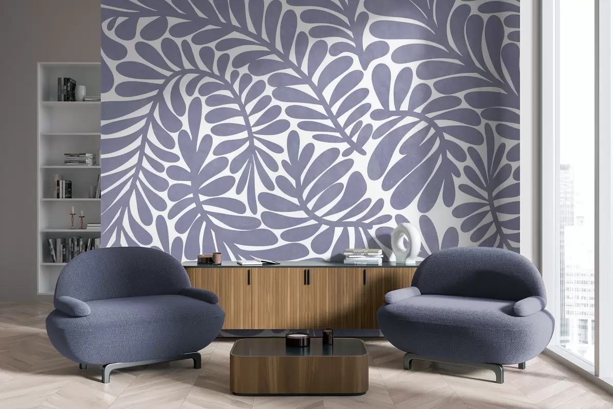 Fototapet Stiliserade ljusblå blad mot en ljus bakgrund, texturerad konst Nr. w09775v1