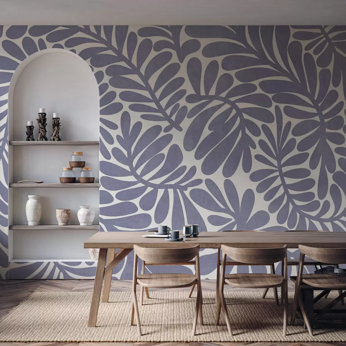 Fototapet Stiliserade ljusblå blad mot en ljus bakgrund, texturerad konst Nr. w09775v1