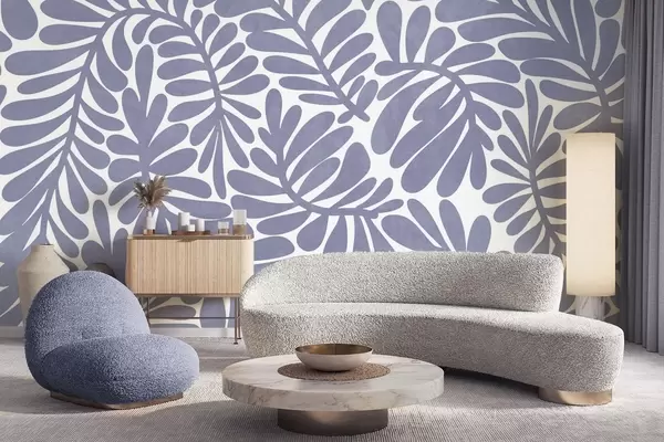 Fototapet Stiliserade ljusblå blad mot en ljus bakgrund, texturerad konst Nr. w09775v1