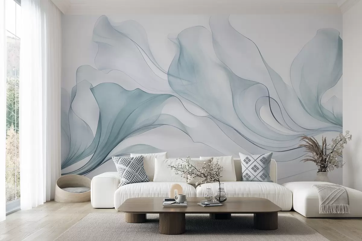 Fototapet En abstrakt, flytande struktur i blå nyanser med fina linjer Nr. w09815v1