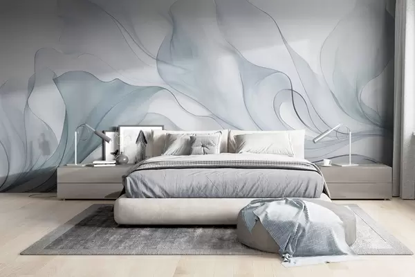 Fototapet En abstrakt, flytande struktur i blå nyanser med fina linjer Nr. w09815v1